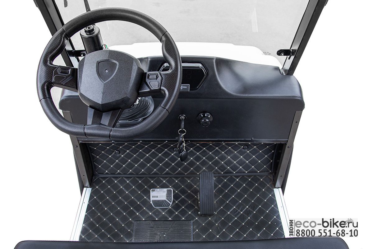 • Нагрузка 300 кг: Гольф-кар способен выдержать большую нагрузку, что позволяет перевозить несколько пассажиров или достаточно тяжелые грузы.